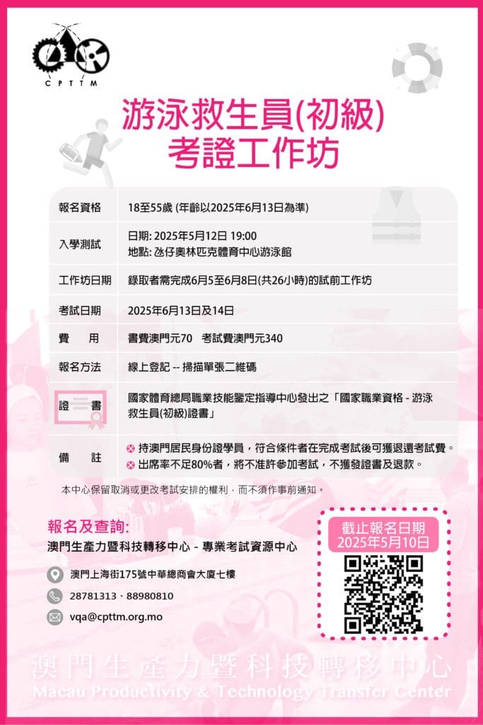 【國家職業資格考試】游泳救生員(初級),第二期現正接受報名啦!