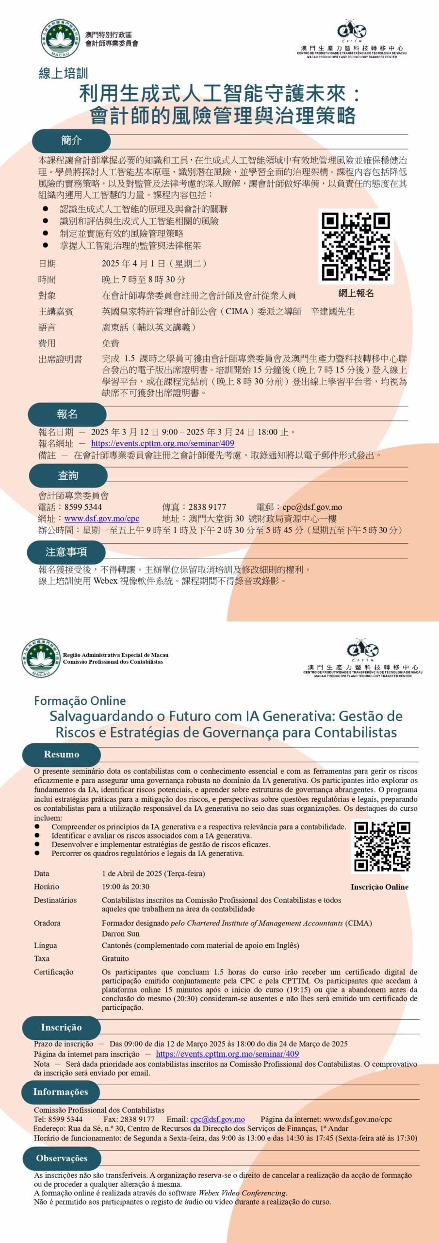 網上登記:https://events.cpttm.org.mo/seminar/409