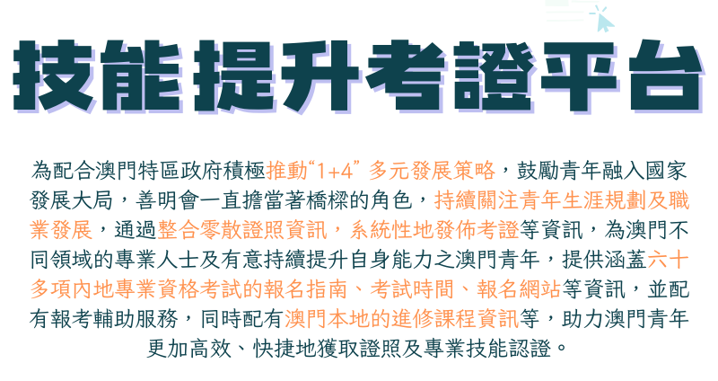 本地考證資訊可以通過以下政府部門的網頁,善明會亦會定時提供相關資料,並提供查詢服務,以促進青年不斷提升自身競爭力。
